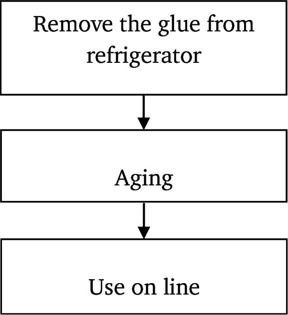 Update the removing time in “In & Out Consumption ReportKeep the glue 2-3 hrs at room temp. Make different area of ‘FORAGING’ and ‘AFTER AGING’.Take the glue to use on-line from ‘AFTER AGING’ area only.