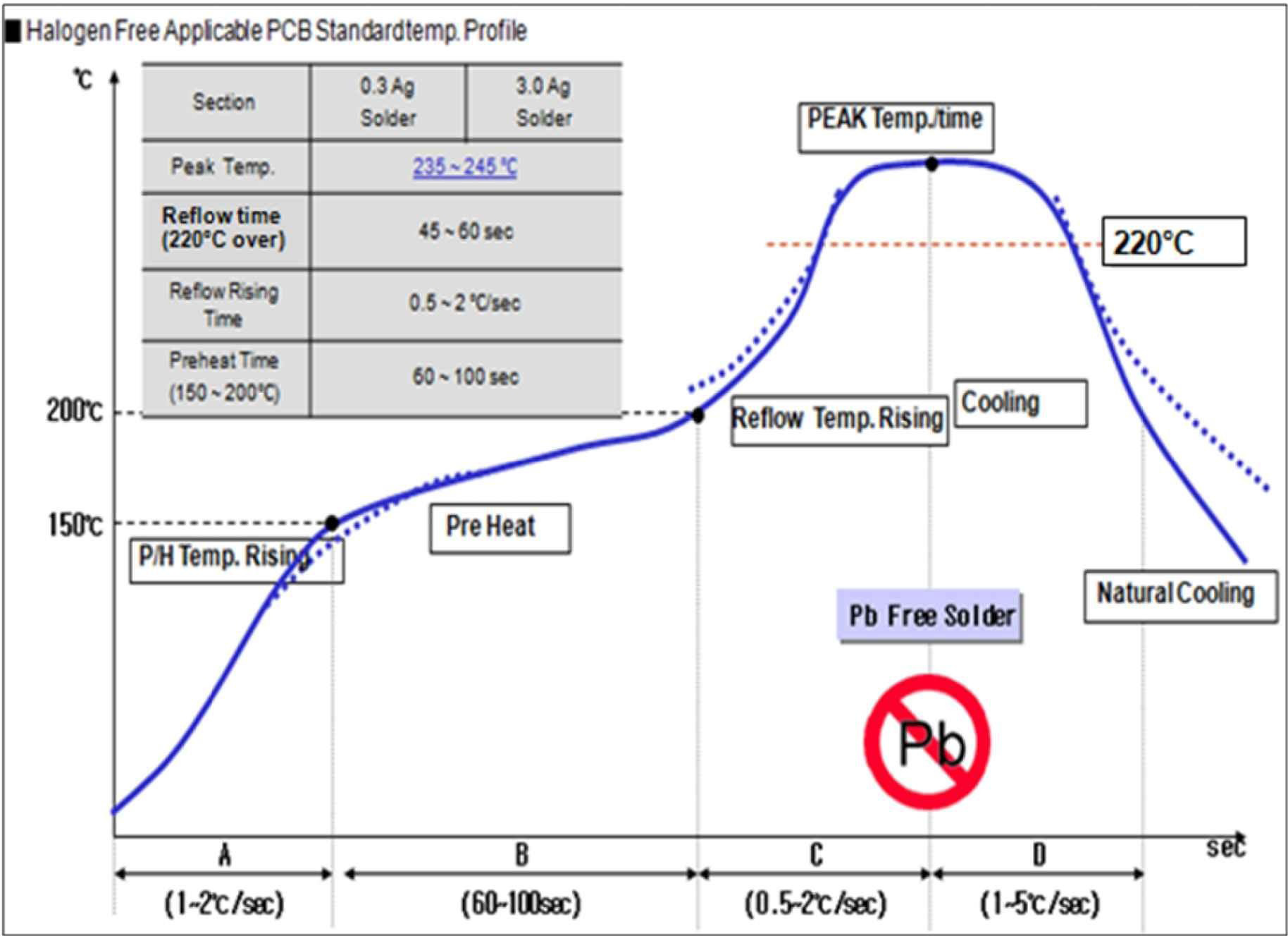 Standard Reflow Profile for Pb Solder Paste: Figure 4.53Standard Reflow Profile for Pb Free Solder Paste:
