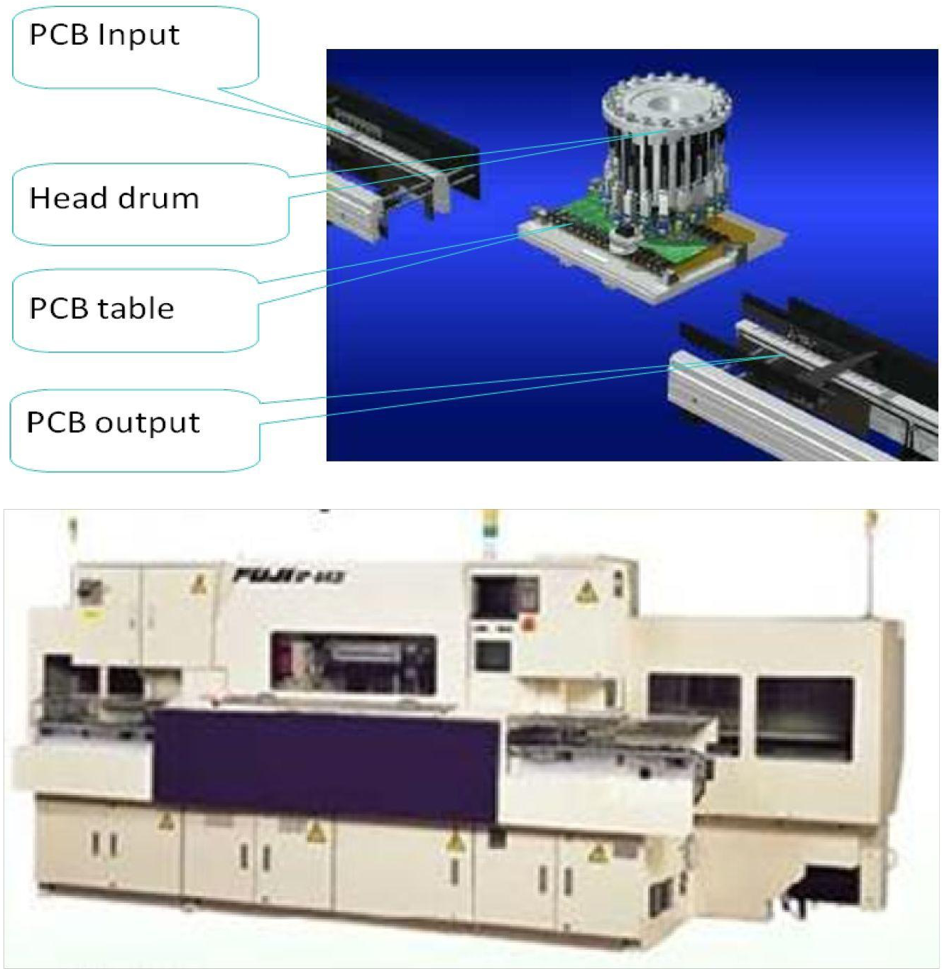 It is used in less complex and mass production system. It is a loading system where thePCB moves to the mounting position; the fixed head drum rotates and repeats the motionand the table with loaded PCB moves along X, Y axis. It is suitable for high mountingpoints per PCB, since more than 200 points space between parts is narrow. It is used inhigh density production type mountings.