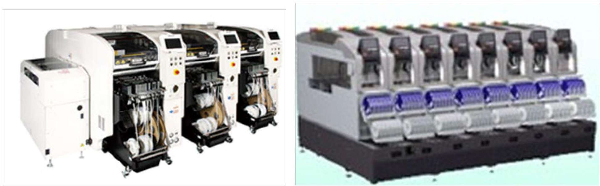 In the modular type equipment, the speed of each module is not fast, depending on theadded quantity of the module the production capacity increases, and it has advantage inacquiring a smaller area and the lighter weight of equipment than rotary type. Foroptimizing the loading program, the supply of required components needs to be workedseparately through many feeders so that it guarantees maximum efficiency as the quantityof production requirement gets higher.
